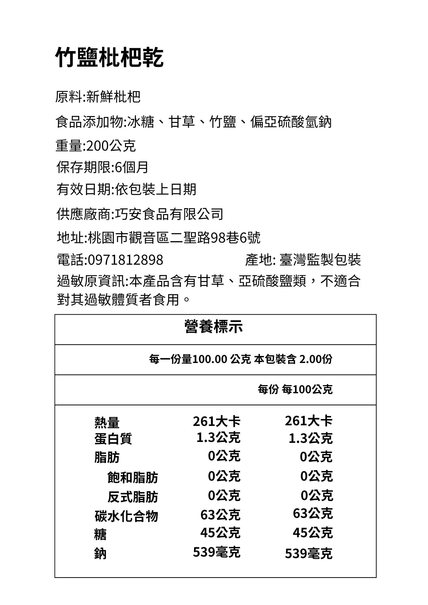 來自巧果嚴選的竹鹽枇杷乾,採取天然健康的低溫烘焙手法製成,健康風味吃得到。